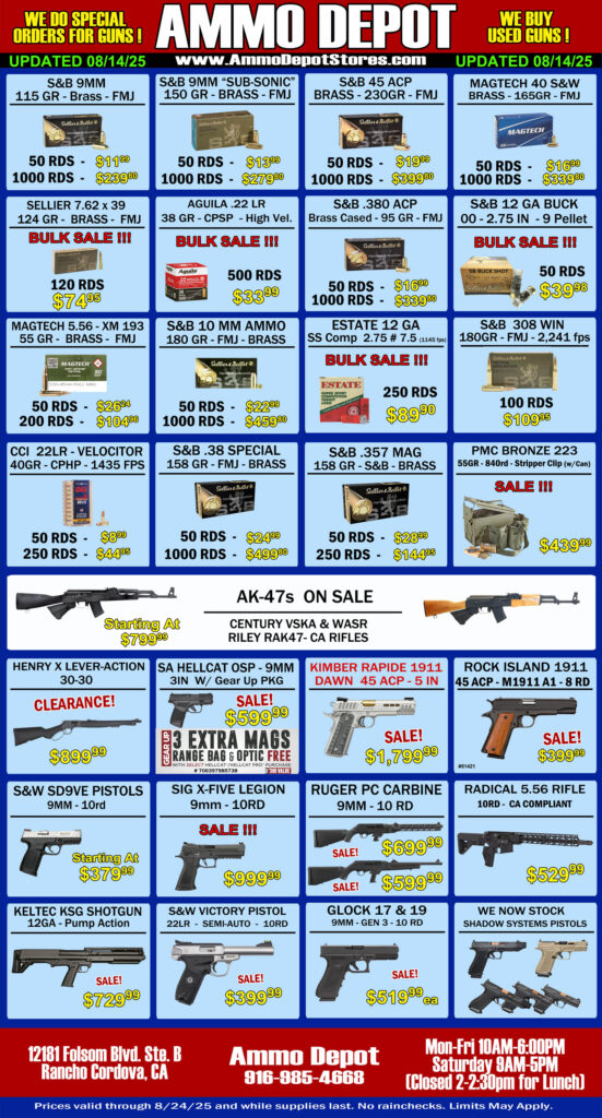 Products We stock a very wide selection of firearms, ammunition, and accessories. Ammo is available by the box or in bulk! -Firearms -Bulk Ammo -Ammo By The Box -Targets -Gun Parts & Accessories -Shooting Accessories